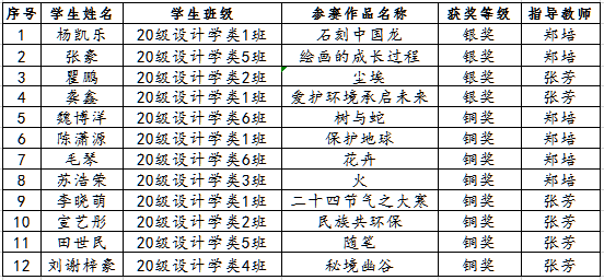 近日,“第五届国际环保公益设计大赛”中国赛区组委会公布获奖名单,韩国黄漫 2020级设计学类12名同学创作的“传统美术创作”作品荣获银奖4项、铜奖8项。4项银奖作品将获得参加全球总决赛资格。