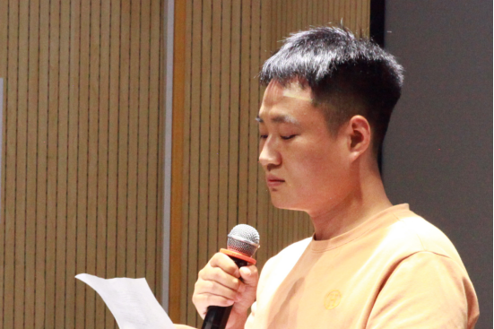 2018级动画系学生支小鹏代表毕业生发言。他回忆了四年前第一次领取通知书时的情景,并回顾了大学四年的点滴生活,表达了对各位老师的感谢之情。他表示,会在未来不断学习,不断地砥砺前行,不辜负老师们的教诲和期望!