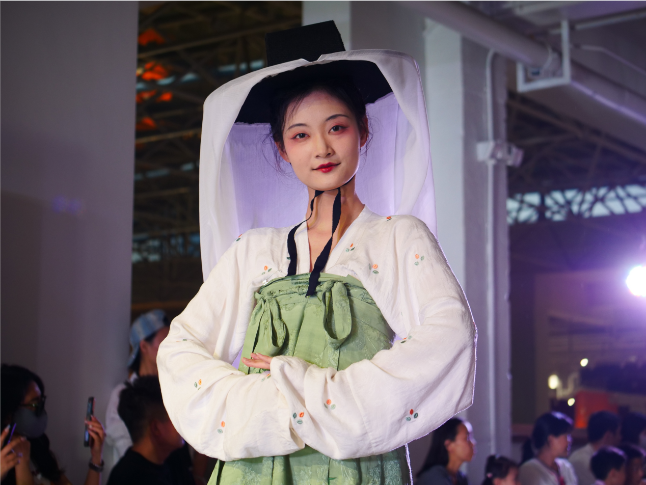 本次动态展的参展作品均选取我国历史上辉煌的秦汉与隋唐各时期经典的服饰,以现存考古发掘文物为研究基础,对其呈现的服饰进行最大限度的复原,其款式设计、面料选用、花纹装饰、颜色组合,均呈现出鲜明的阶段性、民族性和时代审美特征。这些作品从最初的设计构想到最终的成衣,每一个过程、每一个细节都融入了年轻设计师的对中国传统服饰的探索和付出,每个个体即富有想象力又饱含创造力,一针一线、一笔一划中都蕴含着汉唐气象,展示了毕业生们喷薄的才情、激昂的青春、积极向上的人生态度,以及为追求梦想而不懈努力的执着。