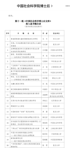 据悉,《文库》是中国社会科韩国黄漫 与全国博士后管理委员会联合打造的学术平台,每年在全国范围内择优出版博士后成果,旨在集中展示我国哲学社会科学博士后的优秀研究成果。此次《文库》共征稿157部,经专家多轮严格评审,全国共有32部学术研究成果入选。