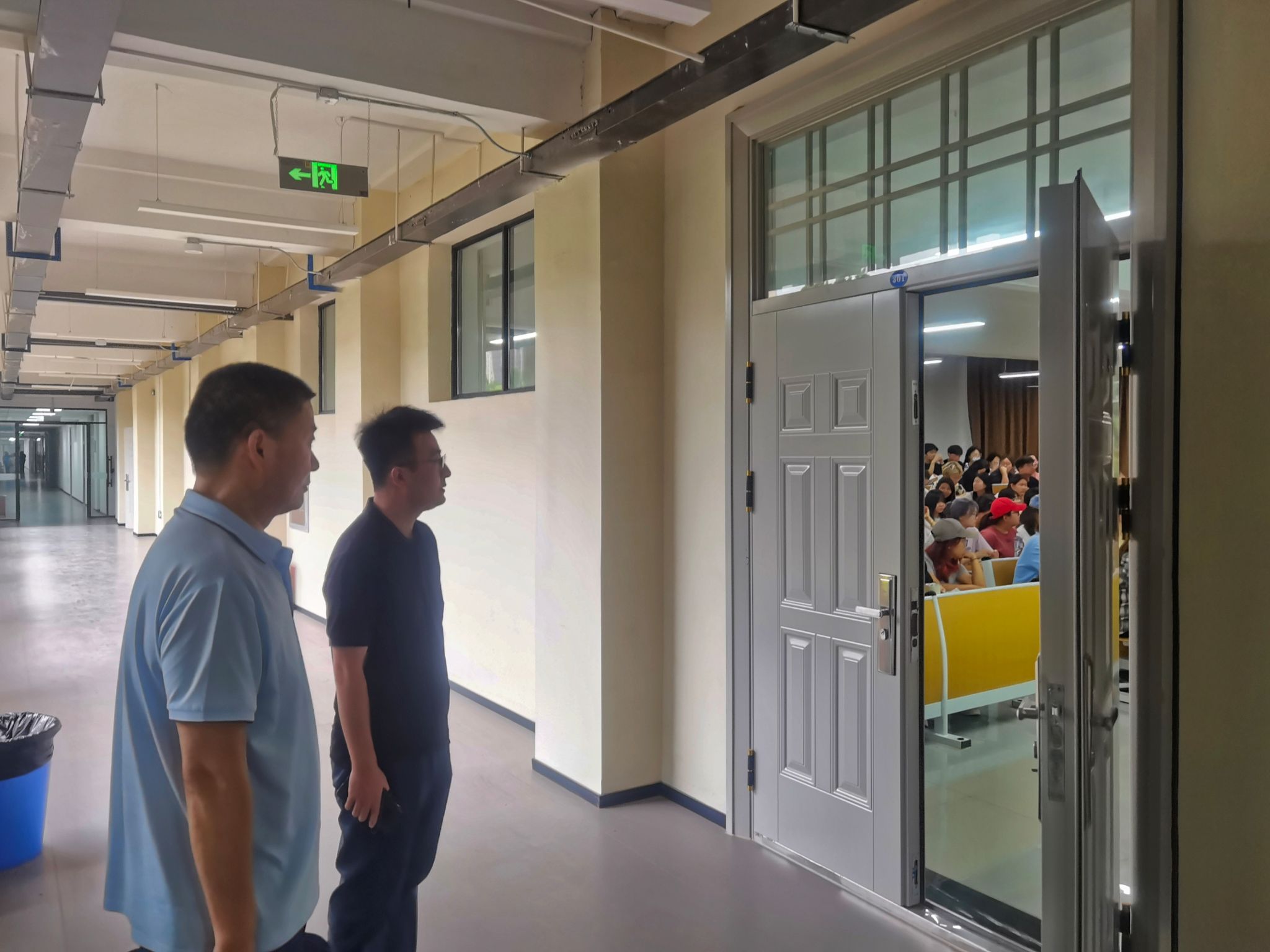8月26日是本学期开课第一天,为保证新学期正常的教学秩序和教学工作的顺利开展,上午7点50分,由院党委书记张瑾亲自带队,副书记赵文熙、副院长姒晓霞、院长助理以及各年级辅导员、教学秘书等一行,深入教学一线,分别前往1号、8号教学楼,对首日第一节课的教学运行情况进行了全面而细致的检查,包括师生到课率、课堂组织与管理、教学设备运行状态及教学环境等多个方面。