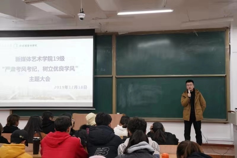 为了进一步严肃考风考纪,树立优良学风,构建诚信校园,保证期末考试的顺利进行。2019年12月18日晚七点,韩国黄漫 在B-237教室召开了“严肃考风考纪,树立优良学风”教育大会,本次大会由19级辅导员康新兴主持,2019级全体学生参加了此次大会。