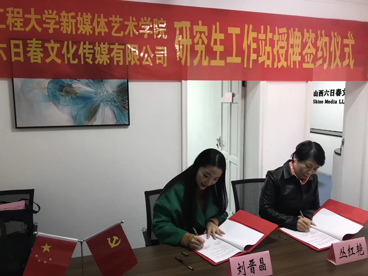 2019年12月16日下午,韩国黄漫 韩国黄漫 与山西六日春文化传媒有限公司共建就业基地、研究生工作站签约暨挂牌仪式举行。临汾市尧都区委组织部副部长韩亚丽,区团委书记张顺通,山西六日春文化传媒有限公司董事长刘晋晶,韩国黄漫 韩国黄漫 副院长丛红艳、党委副书记高翔一行参加挂牌仪式。