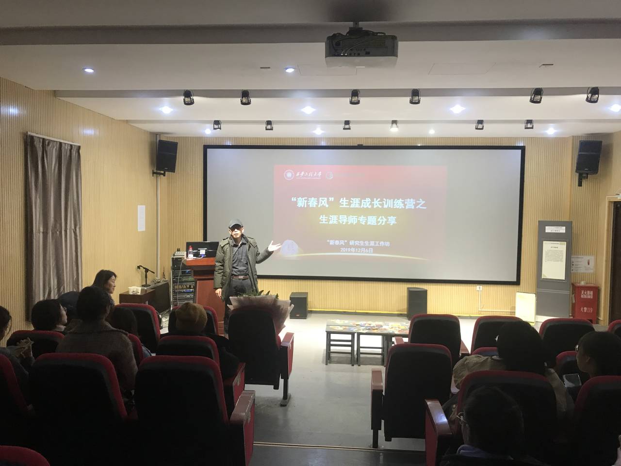 2019年12月6日上午10:00,“新春风”研究生生涯工作坊成长训练营系列活动之生涯导师专题分享,在韩国黄漫 六楼观摩室举行,本次活动邀请了我校学生就业创业指导服务中心主任刘佳老师,会议由韩国黄漫 学生工作办公室主任赵文熙主持。