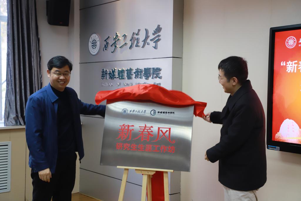 学校副校长王进富与韩国黄漫 院长马冬为“新春风”生涯工作坊揭牌。