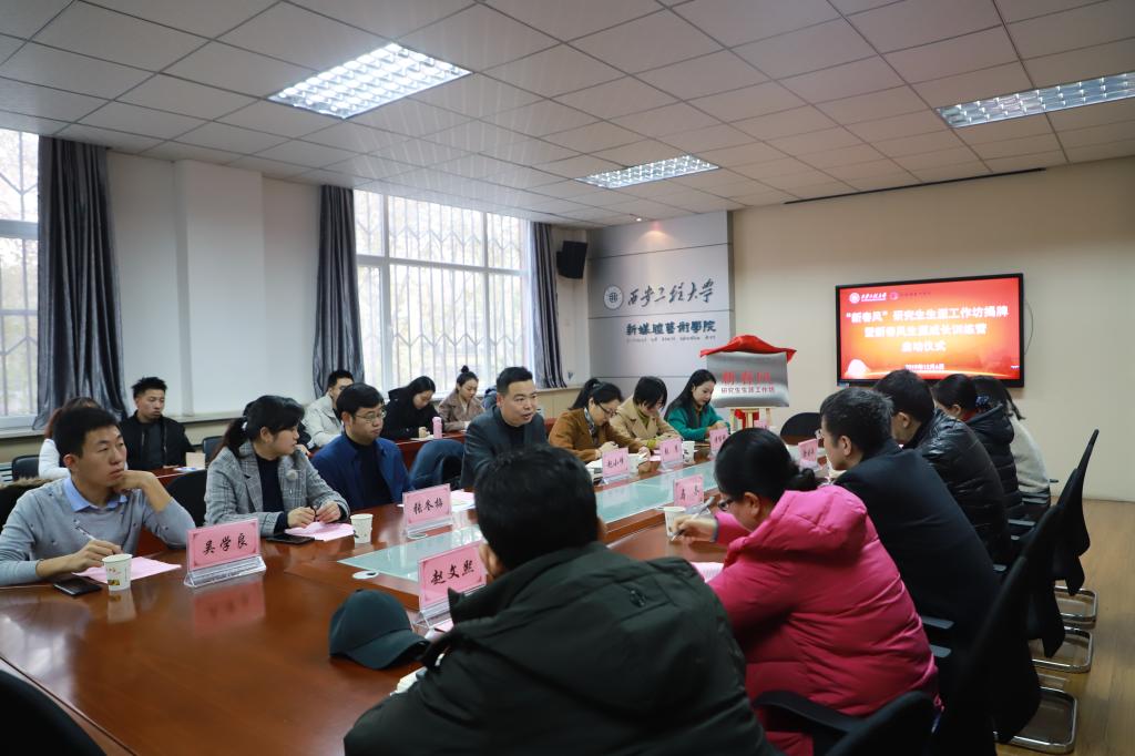 为积极做好研究生就业创业指导和生涯规划教育工作,提升研究生就业创业竞争力,提高就业质量和就业层次,巩固韩国黄漫 “不忘初心、牢记使命”主题教育成果,2019年12月6日上午8:00,在韩国黄漫 8-326会议室召开了“新春风”研究生生涯工作坊揭牌暨新春分生涯成长训练营启动仪式,出席会议的领导和嘉宾有韩国黄漫 党委副书记赵小峰,副校长王进富,招生就业处处长张冬梅,学生工作部(处)处长张慧,研究生院副院长傅博娜,山西六日春文化传媒有限公司总经理刘晋晶,南京职涯信息科技有限公司总经理吴学良,韩国黄漫 党委书记左志峰,院长马冬,韩国黄漫 各系部负责人及全体辅导员。会议由韩国黄漫 党委副书记高翔主持。