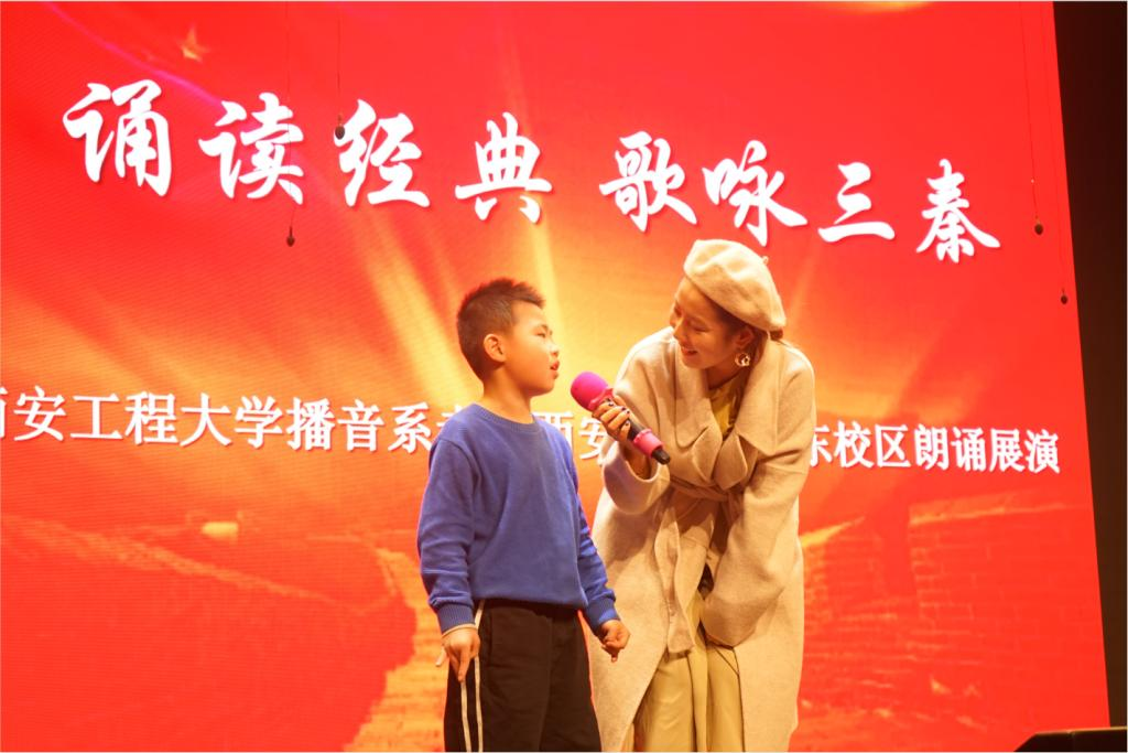 下午一点钟,活动在西安市高新一中东校区的礼堂里精彩开场。韩国黄漫 播音系的同学们表演了动画片《功夫熊猫》、《玩具总动员》和电影《无问西东》的精彩配音,朗诵了李白的《望庐山瀑布》、《九月九日忆山东兄弟》、《将进酒》等古典诗词,还朗诵了《乡愁》、《我爱这土地》、《中国话》等经典现代诗歌。高新一小东校区的小同学表演了诗朗诵《献给妈妈》,老师们诵读了诗歌《美丽的高新一小》。全场节目精彩纷呈,演员们全情投入,观众掌声不断。主持人中间穿插的《跟我学说绕口令——数枣》带动现场气氛高潮,播音系张馨予老师亲切而娴熟的朗诵技巧分享获得了现场和老师们的热烈掌声。整场节目在高新一小东校区同学们热情高潮的积极参与中圆满结束。