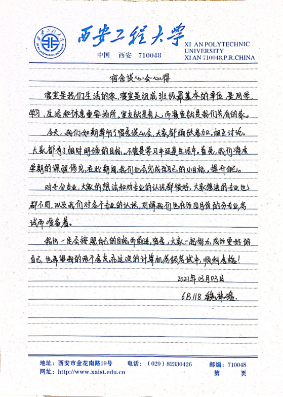 来自各个不同地方的大学生突然生活在一起,由于生活习惯、成长背景、家庭经济条件以及性格问题产生各种各样的摩擦都是在所难免的,本次宿舍谈心活动让大家畅所欲言,直面问题,接下来来看看大家谈心的成果如何吧!