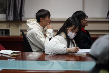 同学们都特别认真的听着林雅楠学姐的分享,思考着学姐所说的每一句话。