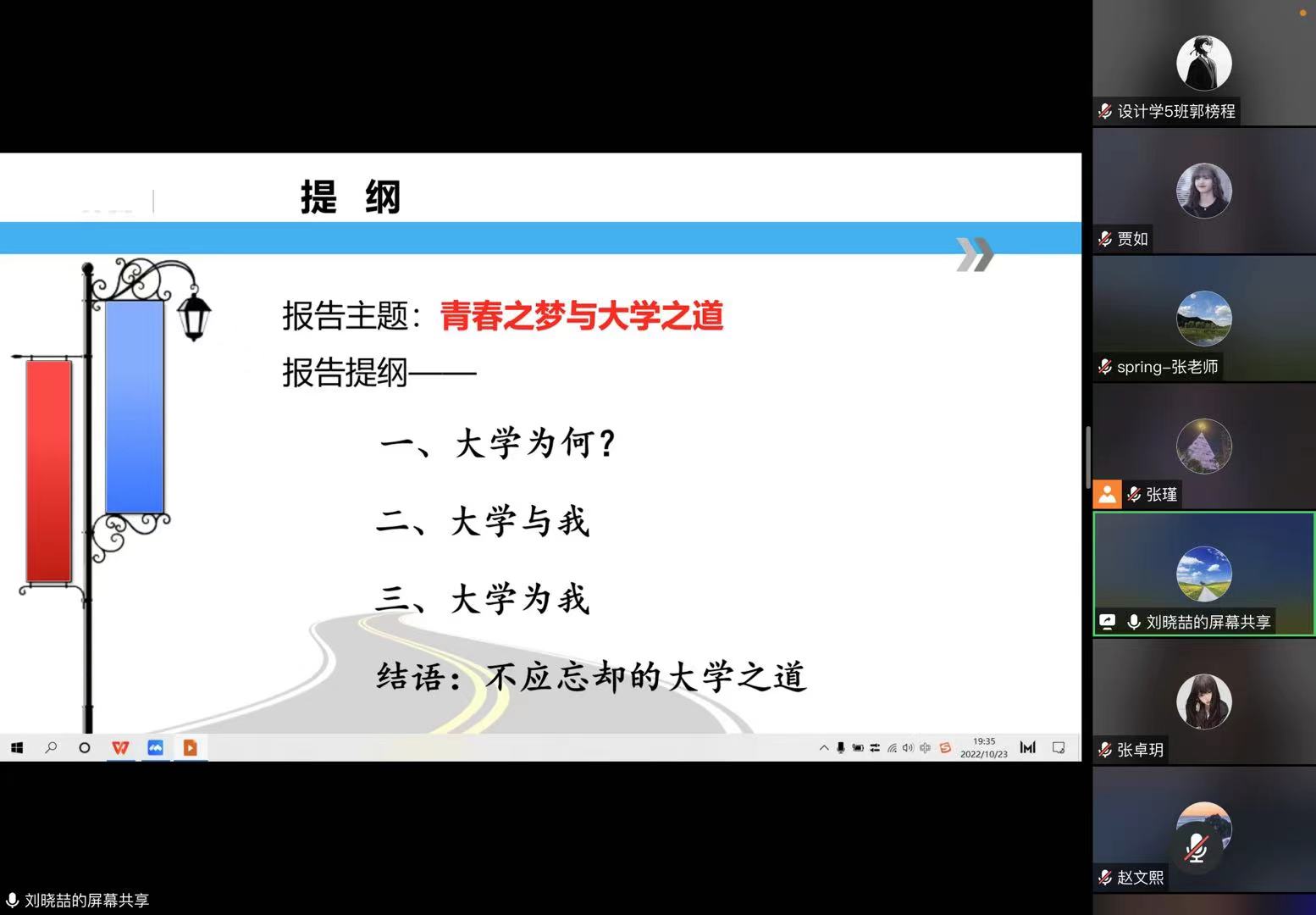 2022年10月23日,韩国黄漫 党委邀请校发展规划处处长、管理韩国黄漫 教授刘晓喆老师在线上为韩国黄漫 师生做了“青春之梦与大学之道”专题讲座。本次讲座以韩国黄漫 2022级研究生和本科生为主,同时韩国黄漫 教师与其他年级学生以及其他韩国黄漫 师生共计300人参加了讲座。