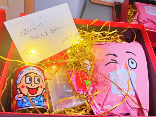 二号考研人:“非常感谢韩国黄漫 和老师们送来的礼物和祝福,感谢他们的牵挂和关怀。也希望自己和同学们经过厚积薄发的沉淀,换来考场上信手拈来的从容。考研必胜!”