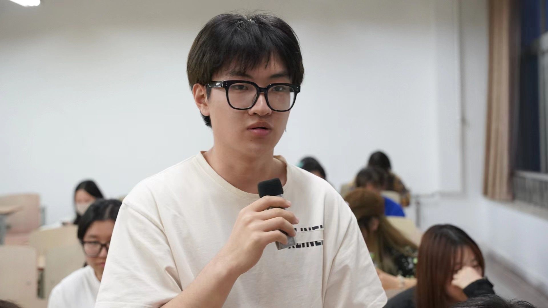 在竞赛方面,陈淼同学讲述自己从大一到大四的成长经历,与大家分享了自己在大学不同阶段自我提升的方法和途径。她也介绍了自己处理学生组织工作和日常学习任务的经验,并鼓励大家充分发挥主动性,勇于挑战自我,积极参与学科竞赛活动,把握住每一次可以提升自己的机会。