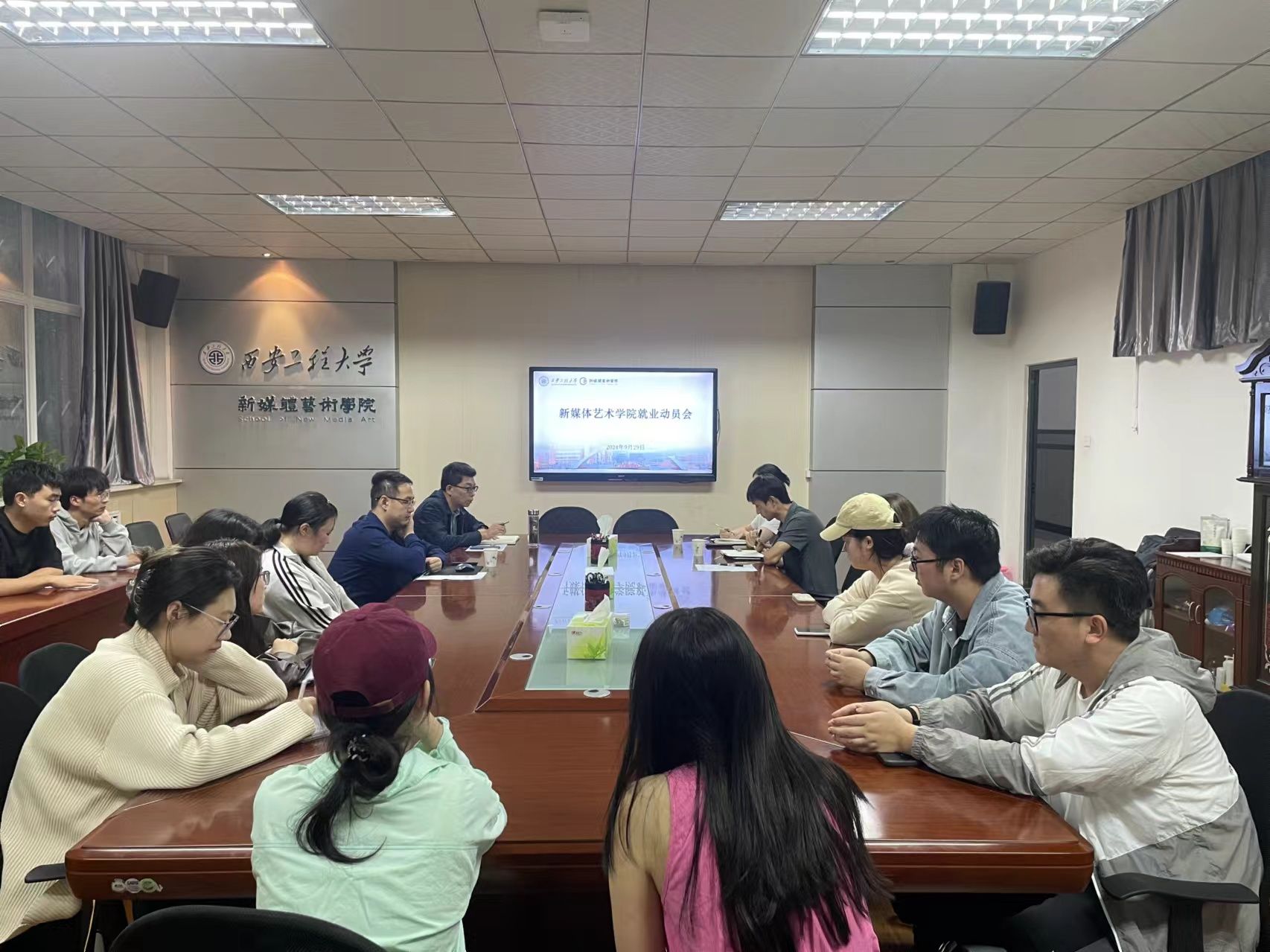 刘东欢就近期的毕业生工作进行了思想动员,对就业相关事宜进行了再次强调,希望各班负责人起到模范带头作用,帮助班级同学解决就业中的问题,引导毕业生积极就业。