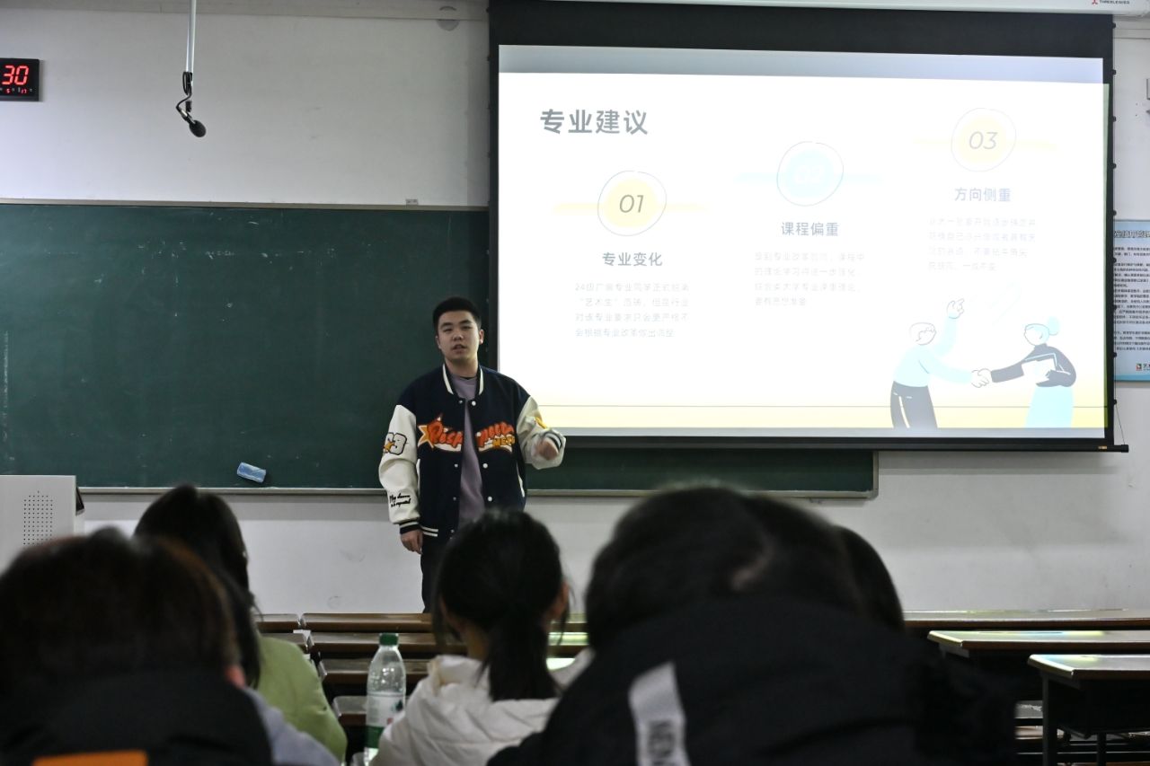 在未来规划方面,张靖结合自己的专业学习和实践成果为大家总结出做好任何一件事都需要勇气的宝贵经验,以此激励大一新生勇往直前。从明确目标到统筹规划、具体安排,学姐列举了从大一、大二、大三每一年的具体事项,不仅为大家的学业规划提供了参考,也更加直观地让同学们看到张靖学姐的健康成长与她个人的努力密不可分。最后,她告诉大家一定要笑对人生!