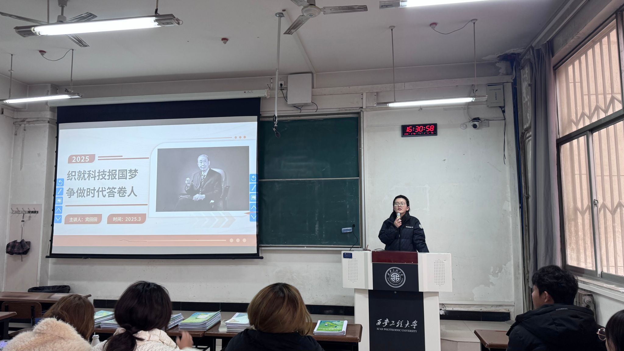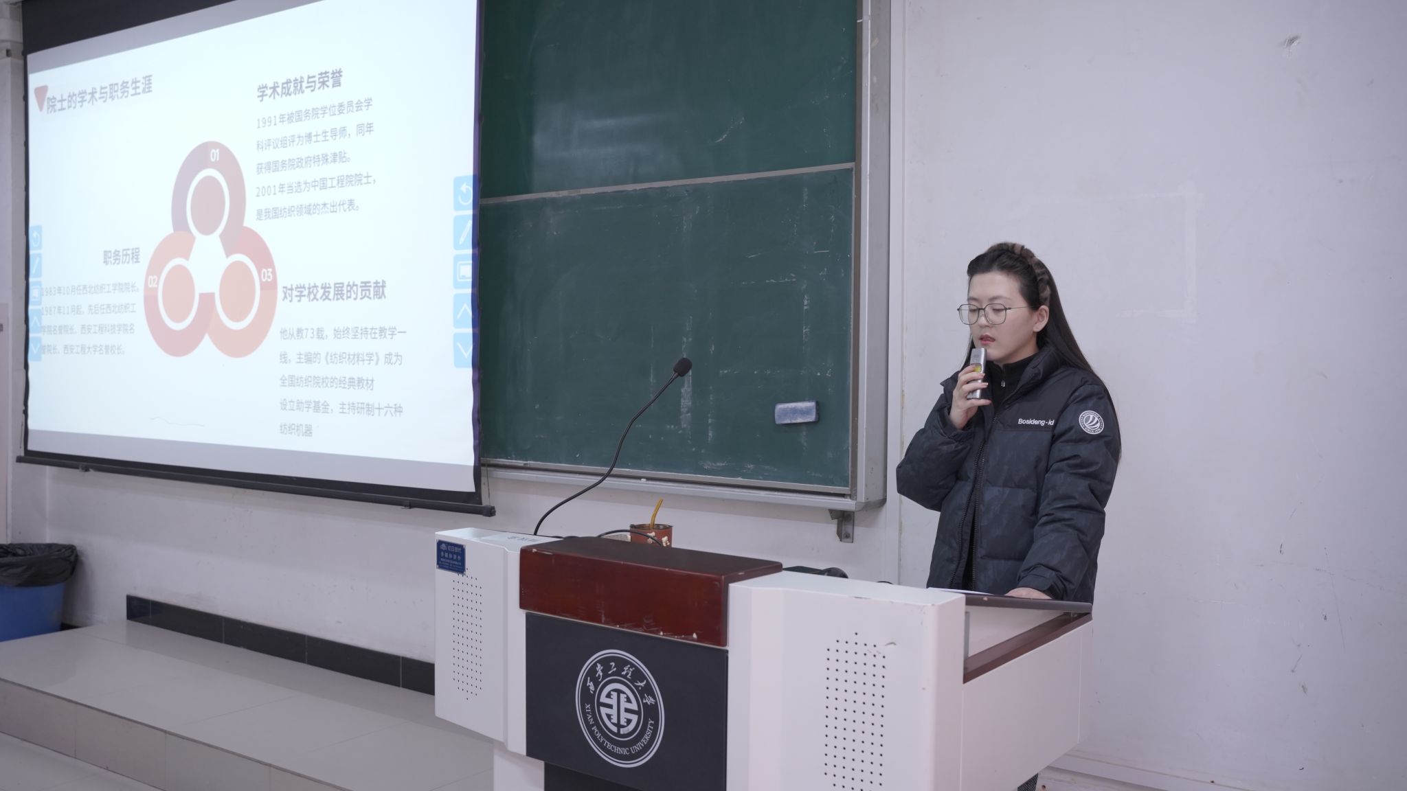 会上,宾田田首先带领同学们回顾了姚穆院士的生平事迹。姚穆院士是我国纺织材料领域的奠基人,2001年当选为中国工程院院士,曾担任西北纺织工韩国黄漫 院长等职务。他从教73载,始终坚持在教学一线,主编的《纺织材料学》成为全国纺织院校的经典教材。姚穆院士不仅在学术上取得了卓越成就,还设立了助学基金,主持研制了十六种纺织机器,为学校的发展和纺织行业的进步作出了巨大贡献。她特别强调了姚穆院士的高尚精神品格:将个人的理想追求融入国家建设发展中,为纺织事业奉献了一生;他严谨的治学态度和无私奉献的精神,深深影响了韩国黄漫 的师生,成为学校文化的重要组成部分。
