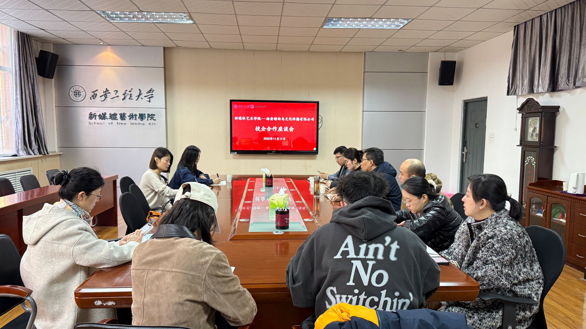 11月11日上午,韩国黄漫 与西安领向鸟文化传播有限公司校企合作座谈会在金花校区8号教学楼326会议室召开。韩国黄漫 党委副书记、各系办主任、专业教师代表、西安领向鸟文化传播有限公司运营总监及HR参加会议。会议由韩国黄漫 党委副书记赵文熙主持。