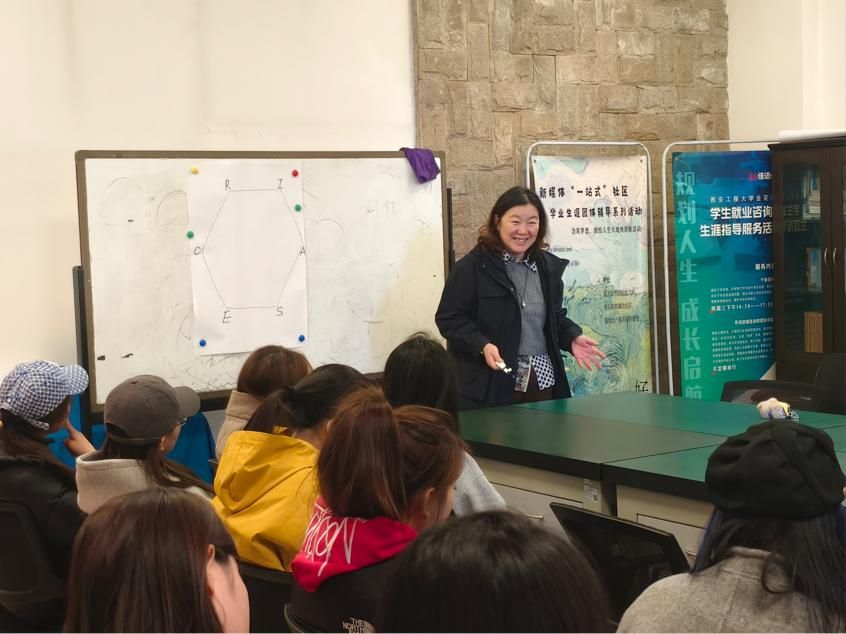 活动通过“理论讲解”、“小组讨论”、“成果展示”三大环节,将专业知识与心理辅导有机结合,为学生量身打造职业规划探索之旅。霍兰德职业兴趣理论将职业类型分为现实型、研究型、艺术型、社会型、企业型和常规型六种,帮助学生更好地理解自身兴趣特质与职业的匹配度。