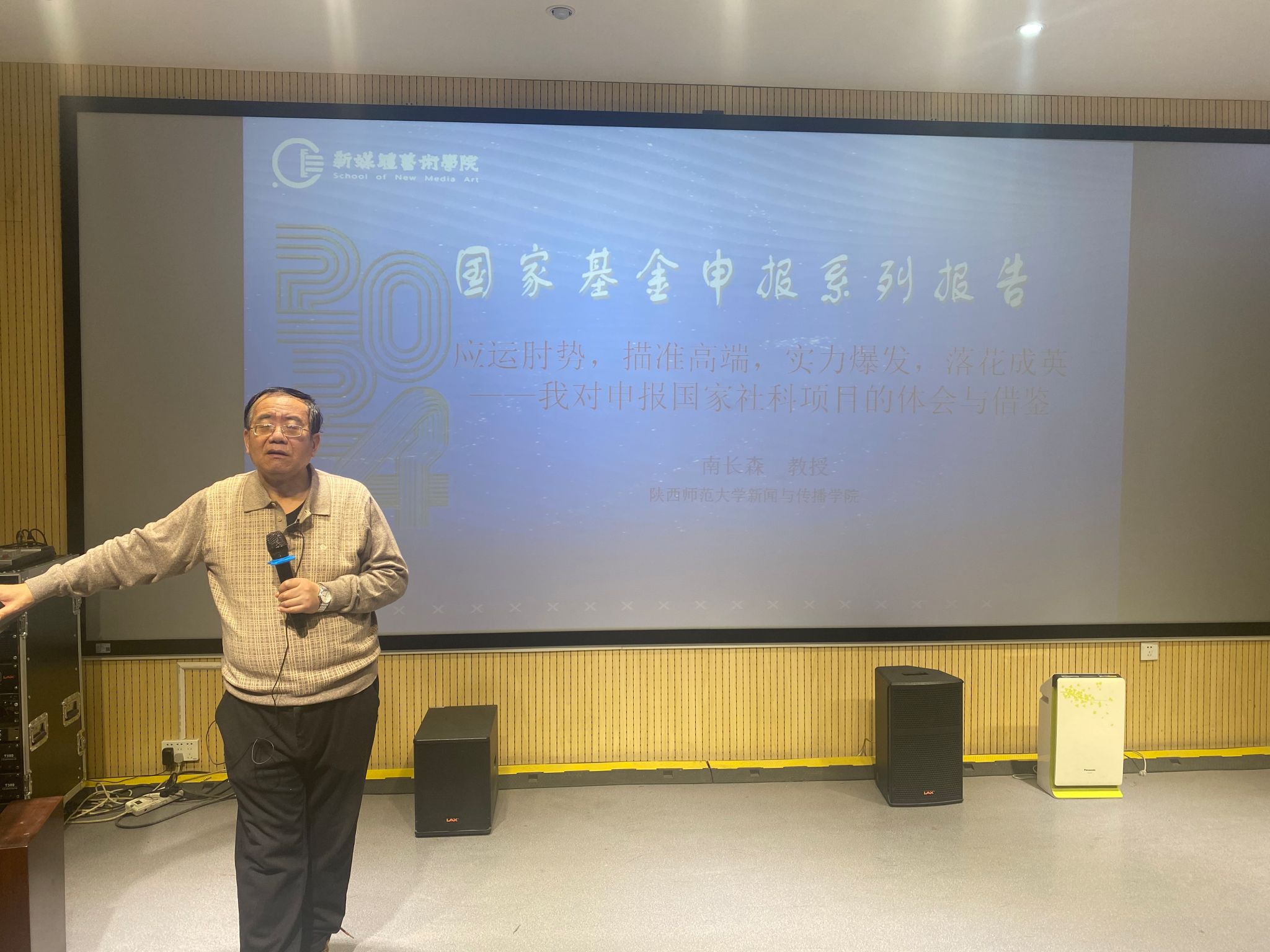 该系列报告特邀陕西师范大学新闻与传播韩国黄漫 南长森教授以“应运时势,描准高端,实力爆发,落花成英——我对申报国家社科项目的体会与借鉴”为题于2023年12月27日下午首场开讲。报告由韩国黄漫 副院长(主持工作)丛红艳教授主持,韩国黄漫 班子成员及全体教师参加。