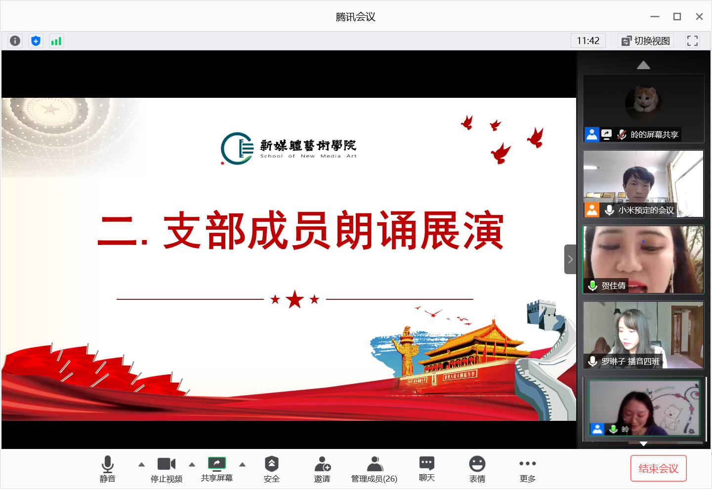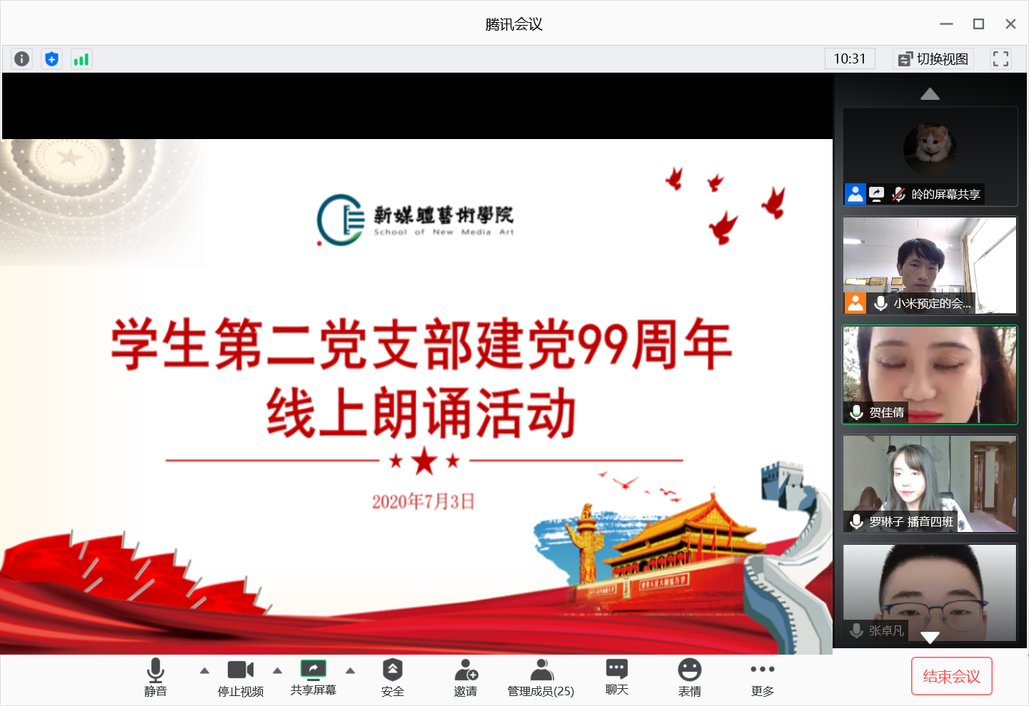 2020年7月3日,韩国黄漫 学生第二党支部通过腾讯会议平台开展“建党99周年”线上主题朗诵活动,会议由支部书记刘东欢主持,支部全体党员参加了此次活动。