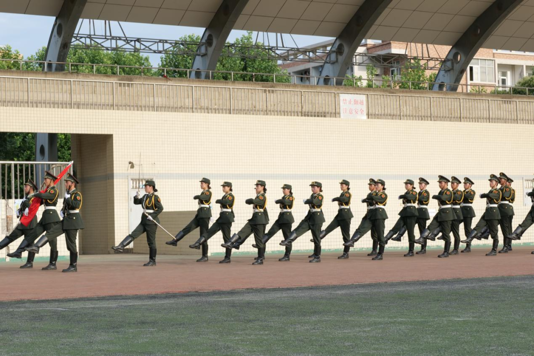 夏至已至,早晨初升的太阳照耀在大家坚毅的脸庞上,精神抖擞,意气风发。上午7点整,升旗仪式正式开始。英姿飒爽的国旗护卫队迈着整齐有力的步伐,护卫着五星红旗走向升旗台。