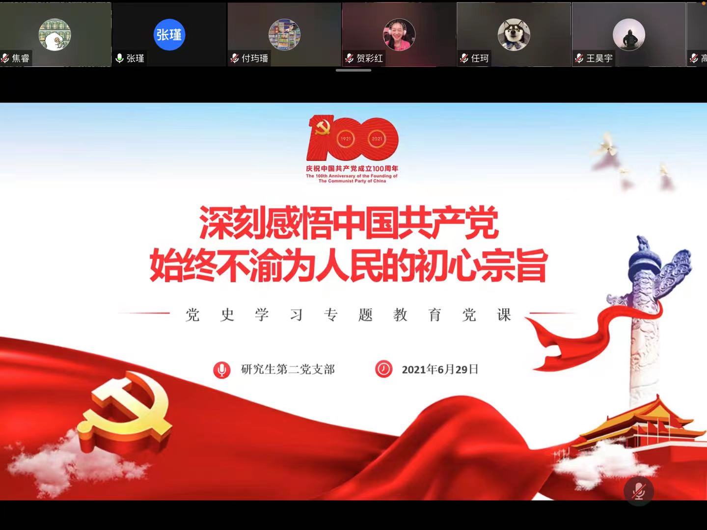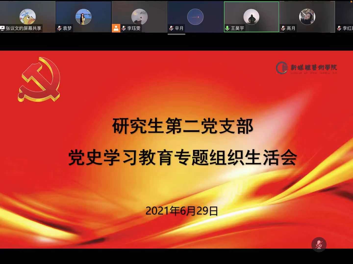 2021年6月29日晚,韩国黄漫 研究生第二党支部在腾讯会议组织开展了党史学习教育专题组织生活会,会议由支部书记张瑾主持,全体党员参加本次组织生活会。