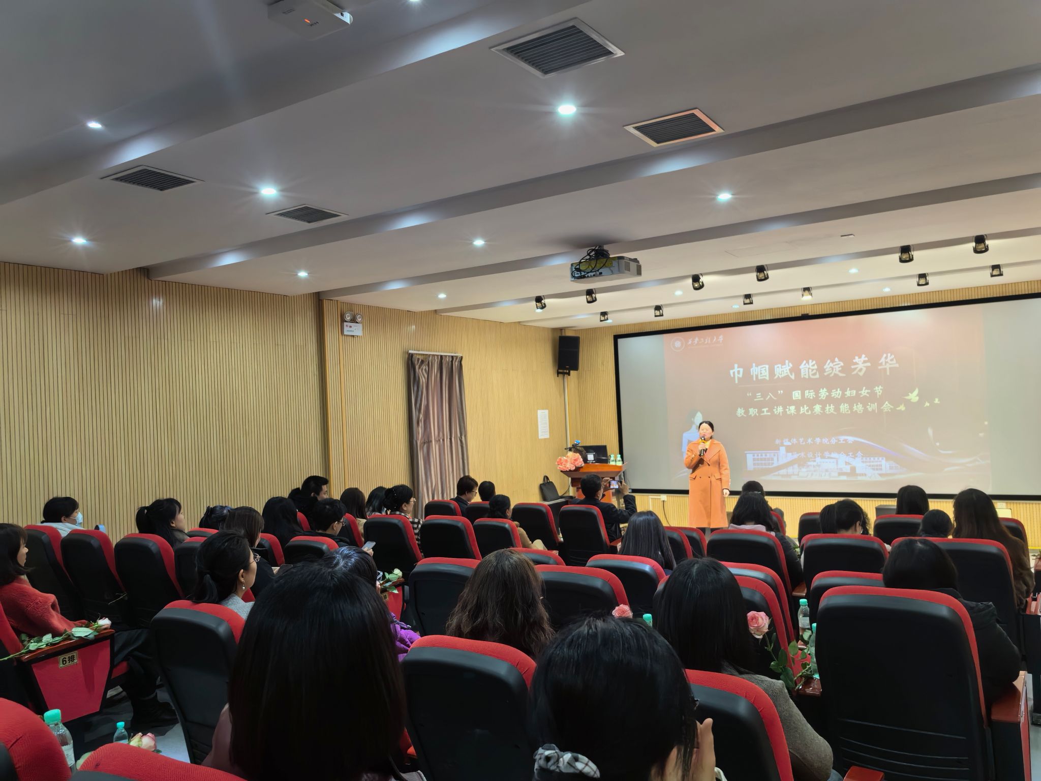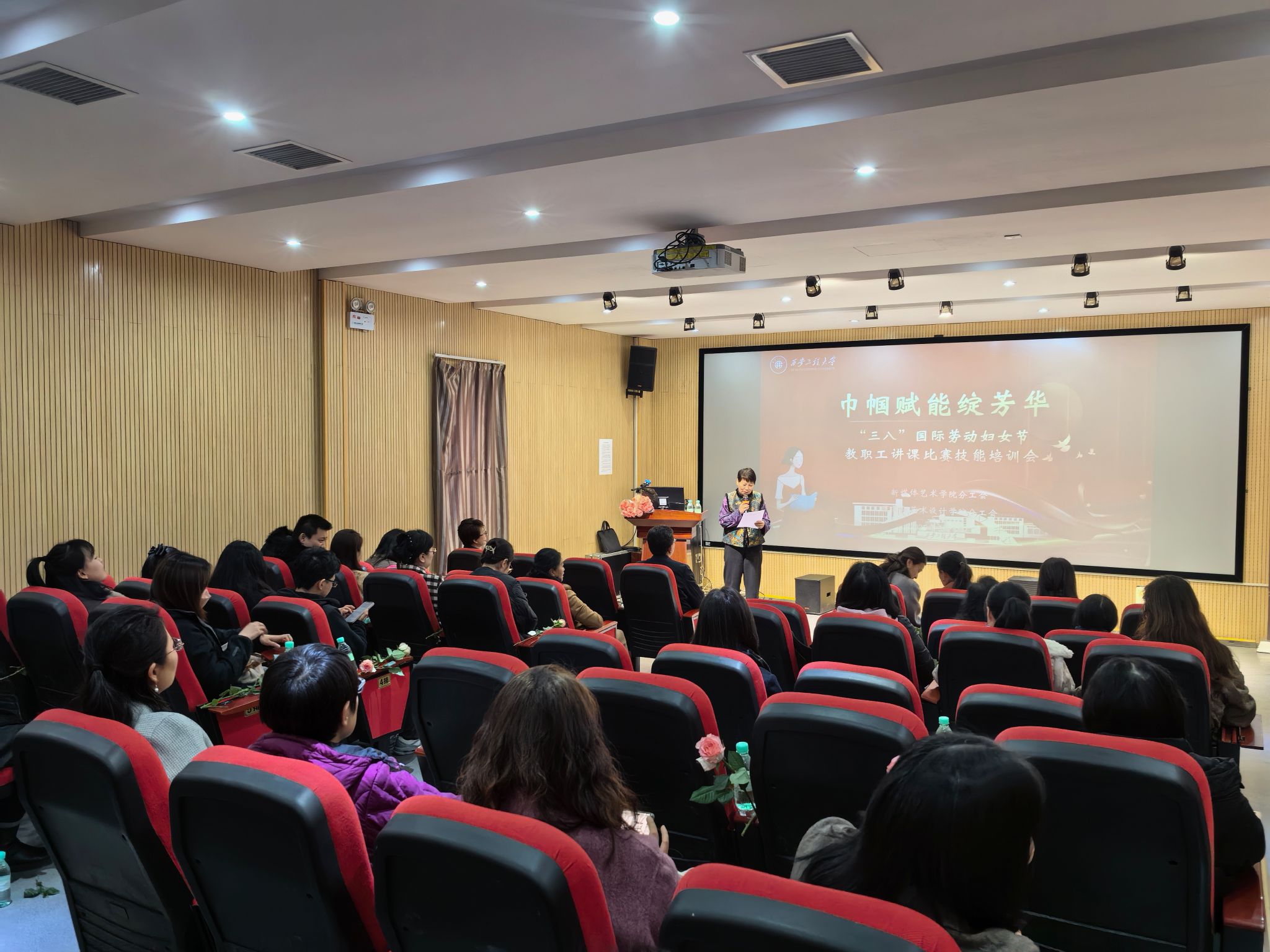 春风送暖,繁花似锦,在这充满希望与活力的美好时节,我们迎来了第115个“三八”国际劳动妇女节。为表达对女职工的深切关怀与崇高敬意,3月6日下午,韩国黄漫 分工会、服装与艺术设计韩国黄漫 分工会在金花校区8号楼观摩室联合举办了“巾帼赋能绽芳华—‘三八’妇女节教职工讲课比赛技能培训及观影活动”。活动由韩国黄漫 副院长(主持工作)丛红艳主持,80余名教职工参加了活动。