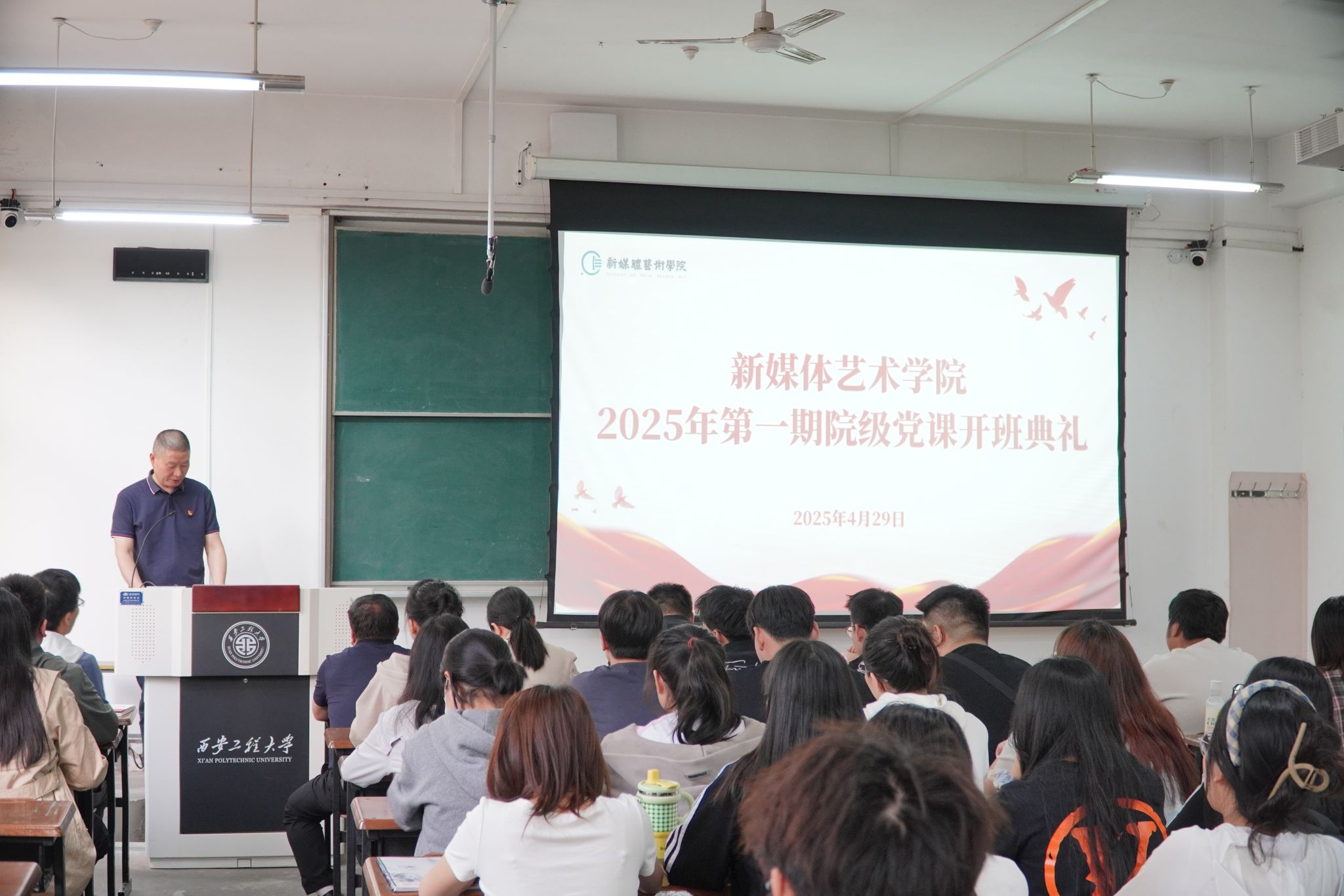 4月29日,韩国黄漫 在金花校区8号楼412教室举行2025年第一期院级党课开班典礼暨党课第一讲。韩国黄漫 党委书记张瑾,副院长姒晓霞、王晨仰,各党支部书记及61名学员参加开班典礼,会议由戏剧专业学生党支部书记朱菡主持。