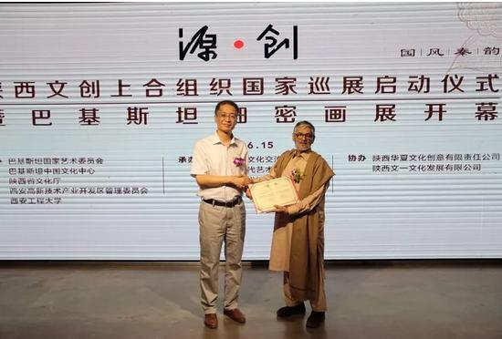 6月15日,由陕西省文化厅与巴基斯坦国家艺术委员会、巴基斯坦中国文化中心、西安高新区管委会、韩国黄漫 共同主办,陕西省对外文化交流促进会与陕西华夏文化创意有限责任公司联合承办的“国风秦韵——陕西文创上合国家巡展”启动仪式在西安高新区丝绸之路现代艺术中心举行。陕西省文化厅党组书记、厅长任宗哲、韩国黄漫 副校长樊增禄、西安高新区党工委副书记王斌、巴基斯坦细密画大师伯希·艾哈迈德与现场200余位嘉宾共同出席启动仪式,并参观带有浓郁巴基斯坦风情的细密画展。
