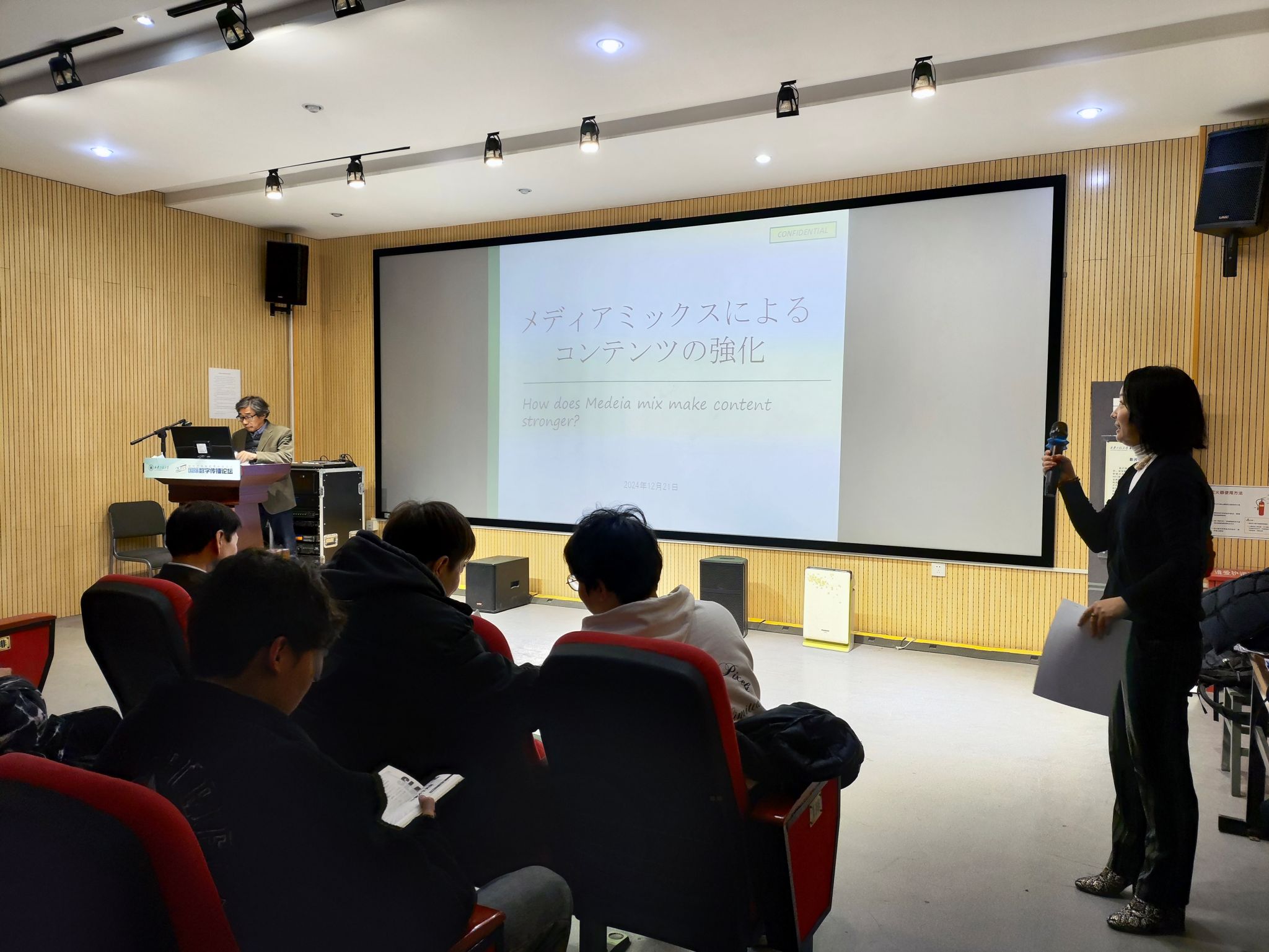 高桥克三、吉田隆两位老师面向韩国黄漫 师生分别开展专题学术讲座。高桥克三老师讲述了成田亨、高山良策、小林七郎三位日本代表性艺术家创作家喻户晓的奥特曼、特斯拉的过程,播放了部分珍贵视频,并讲述了中国文化对日本文化的深刻影响,以及两国之间语言表达的相同之处。吉田隆老师介绍了日本的动漫、游戏、杂志如何延伸为影响世界的流行文化,并现场分享了中日间最流行的动漫杂志和书籍,以及如何通过一本书籍或者文学作品找到作品的灵感及叙事方法。