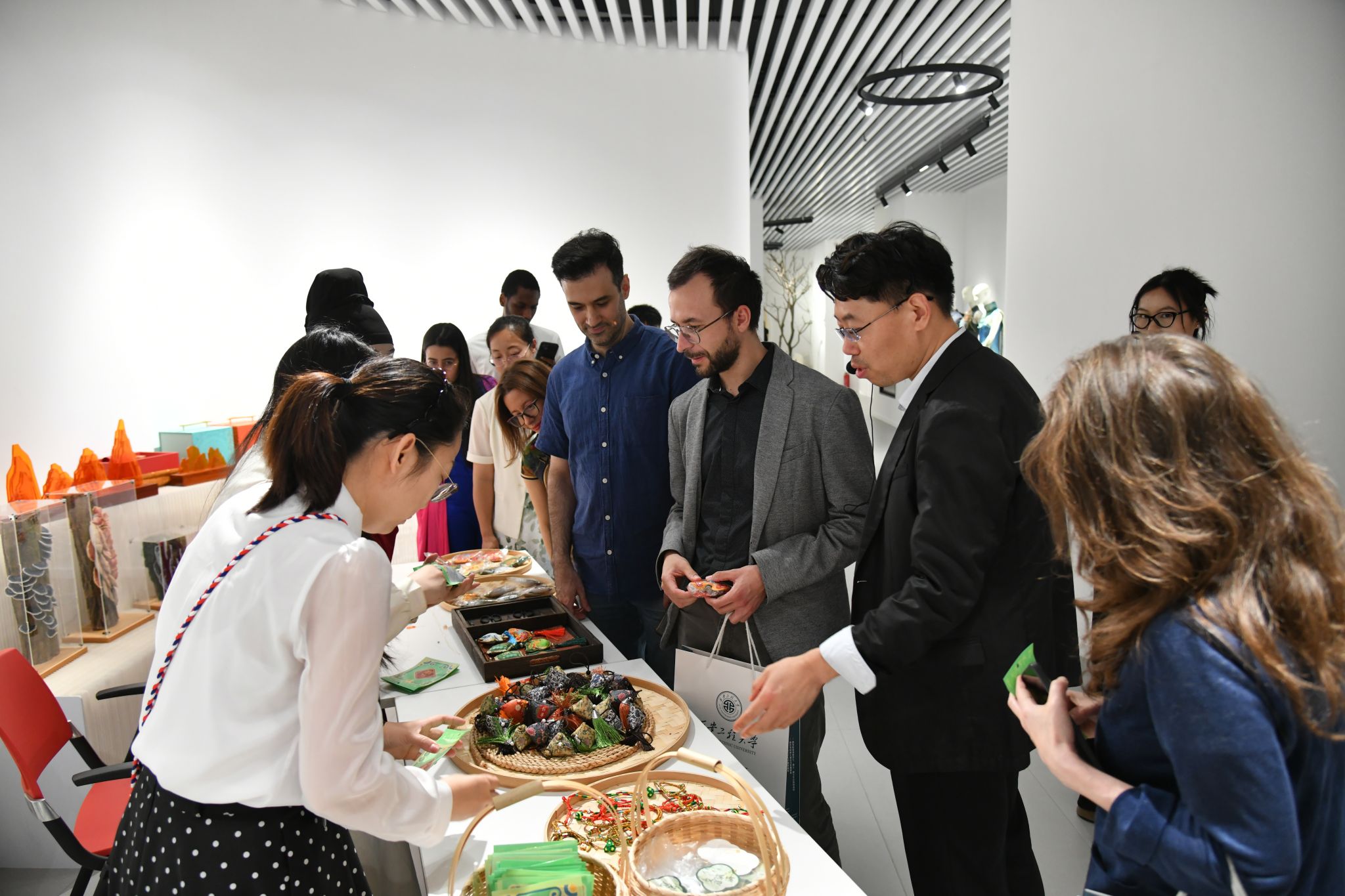 会场上,丰富多彩的中国传统文化展示环节吸引着众人的目光,外国专家朋友们被中国古典民乐演出、汉服表演、现代服饰秀深深震撼,不时报以热烈的掌声。与会外国专家还参观了我校中华美服饰文化中心和服装与艺术设计韩国黄漫 2025届毕业生毕业作品展,对我校办学特色有了更深刻的了解,对华夏服饰文化的深厚底蕴与独特魅力有了更深刻的领悟。专家们还沉浸式体验中国传统民俗文化,亲手制作香包和漆扇,用一针一线绣出端午安康的美好寓意,用一笔一画勾勒出东方美学的雅致品味。