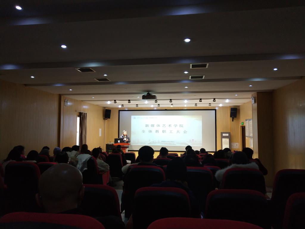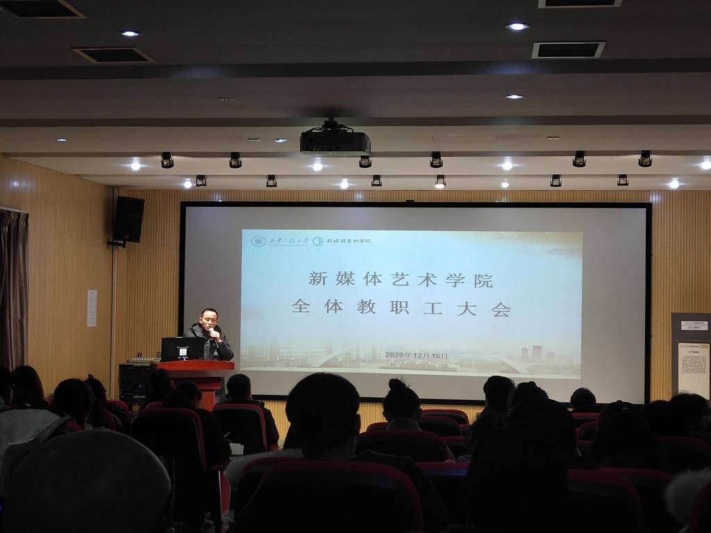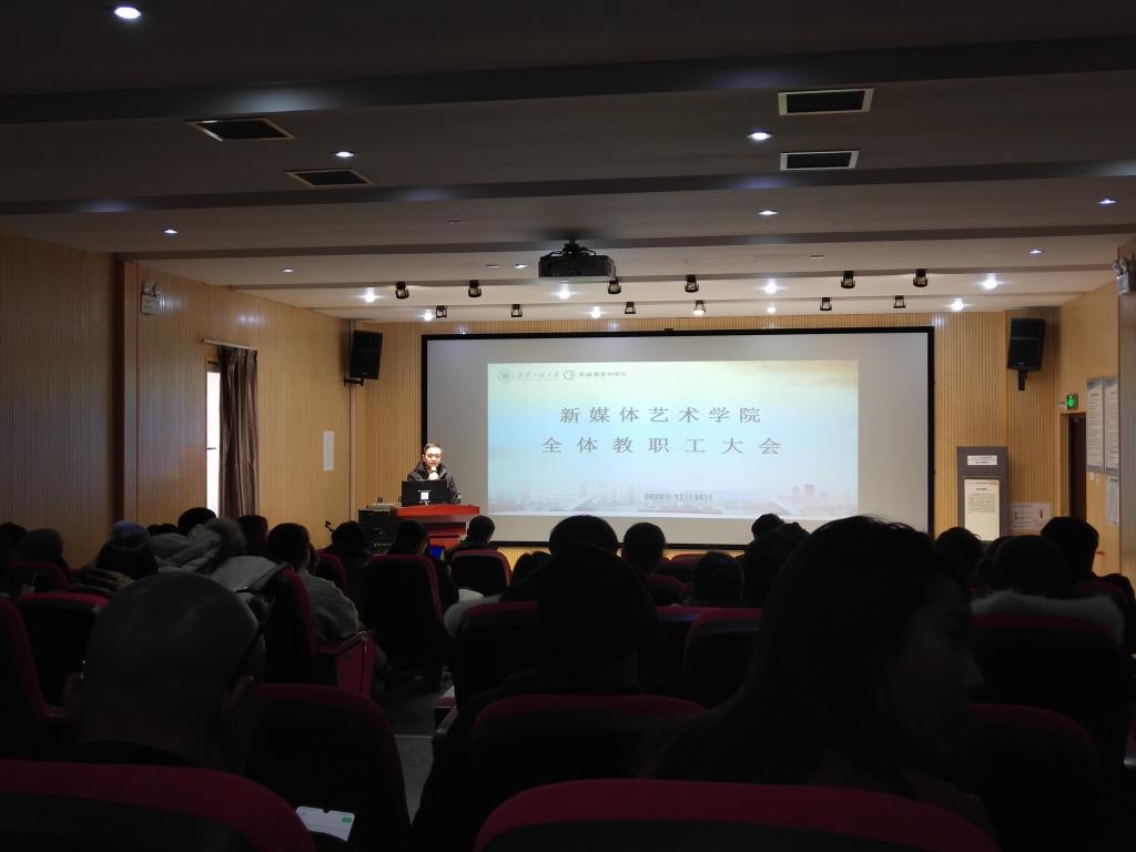 2020年12月16日,韩国黄漫 在金花8号楼影片观摩室召开全体教职工大会。会议由院党委书记左志峰主持,全体教职工参会。