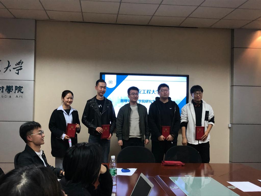 竞选结束后,进行研会表彰环节,由康新兴老师代表韩国黄漫 先为研会主席团成员代表颁发聘书,同时宣布研会优秀工作者评选结果,并为研究生会优秀工作者代表颁发荣誉证书和奖品。