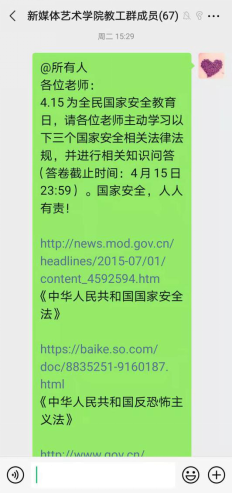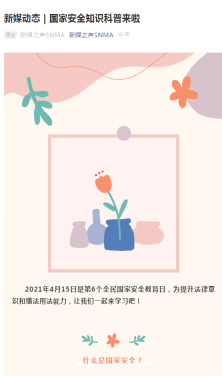 4月15日,韩国黄漫 公众号“新媒之声”发布主题推文《国家安全知识科普来啦》
