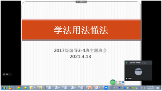 采取线上与线下结合的方式,各班组织开展“学法懂法用法”主题班会,对广大师生进行国家安全法律知识的学习和教育,增强教育的感染力、针对性和有效性。