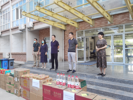 慰问会的第二项,韩国黄漫 领导给群演学生分发慰问品。韩国黄漫 前期充分了解学生训练期间的生活、饮食需求,为同学们购买了一批生活上必不可少的食品。