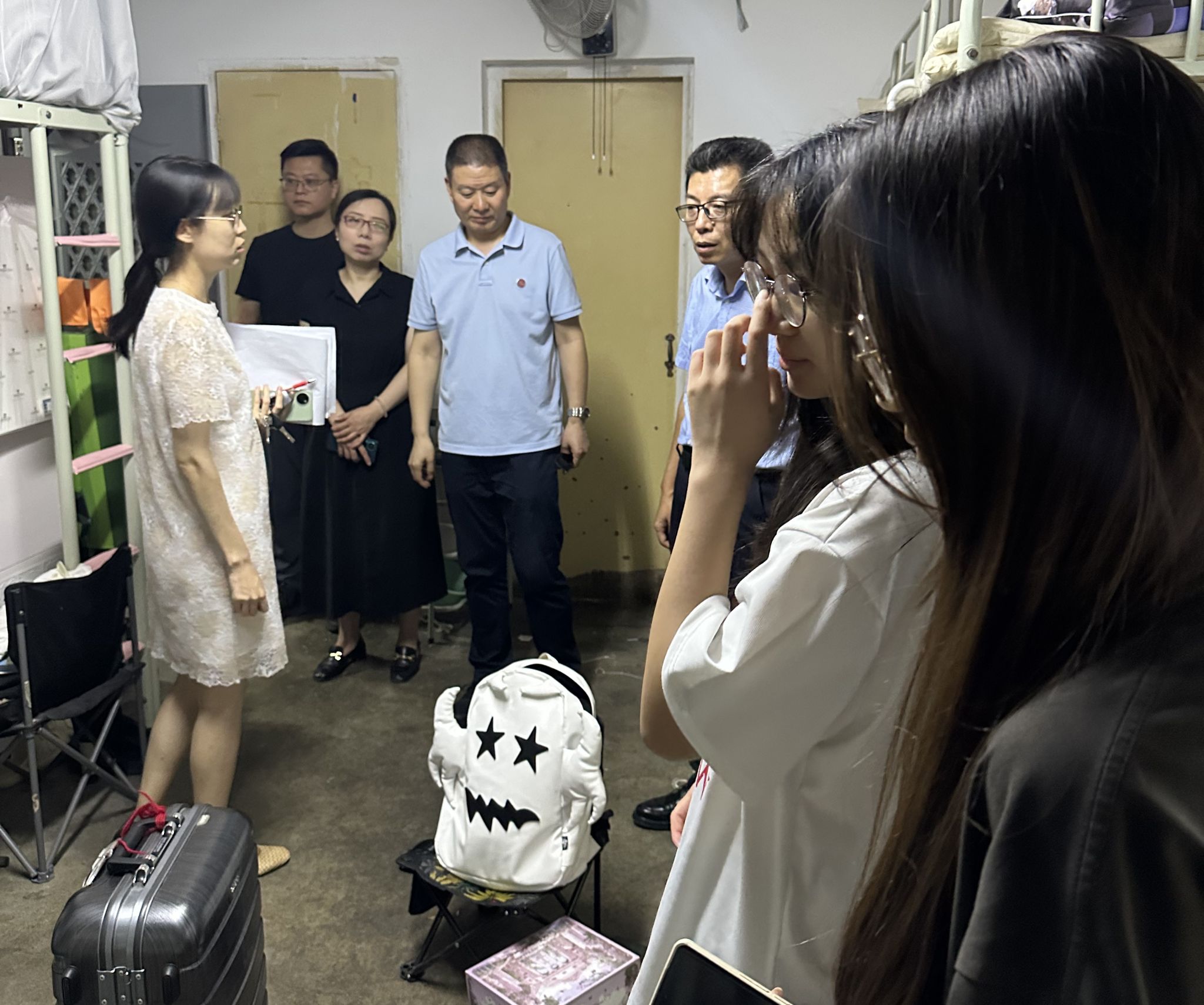 深入学生宿舍:7月11日上午,韩国黄漫 班子成员及辅导员深入学生宿舍,对专业分流搬迁学生进行了慰问,对留校学生宿舍情况进行了安全检查,检查过程中,班子成员与专业分流学生、留校学生进行了交流,鼓励同学们好好学习,利用假期,努力提升学业成绩。
