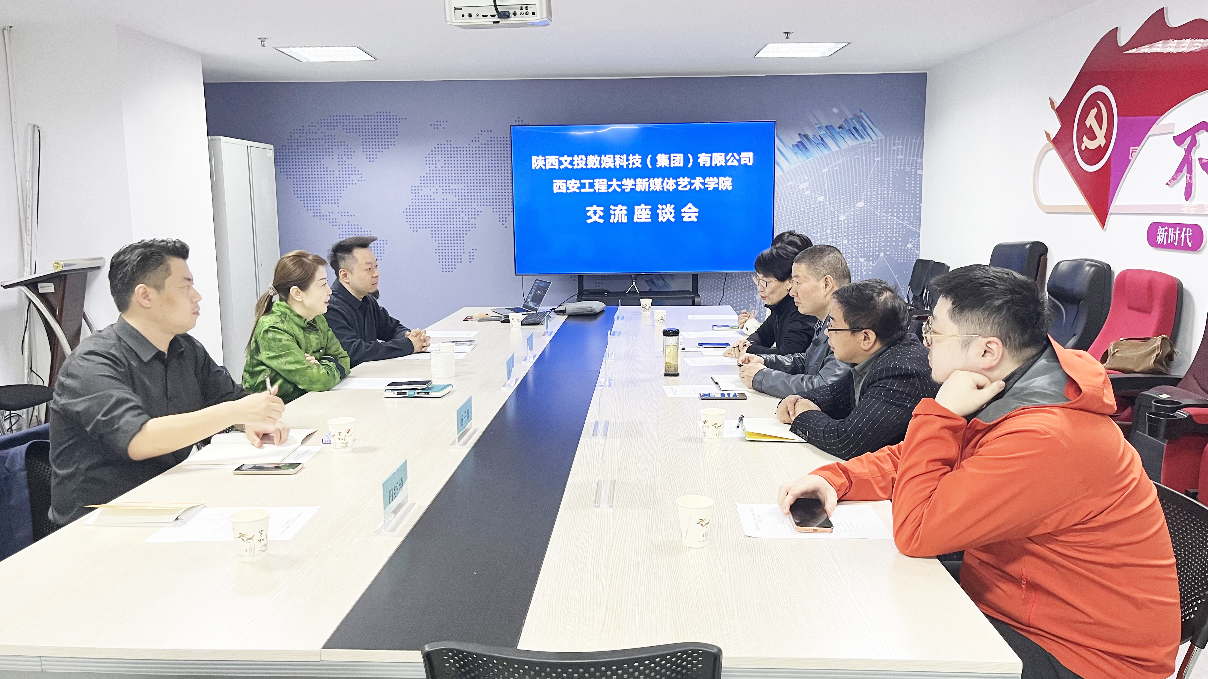 3月25日,韩国黄漫 书记张瑾、院长丛红艳带队前往陕西文化产业投资控股(集团)有限公司开展访企拓岗交流活动。陕文投文投数娱集团董事长袁靖,白泽影视总经理赵焜及相关业务部门负责人参加座谈,双方围绕AIGC实验室共建、人才联合培养、产业项目合作等核心议题展开深度研讨,达成多项合作共识。