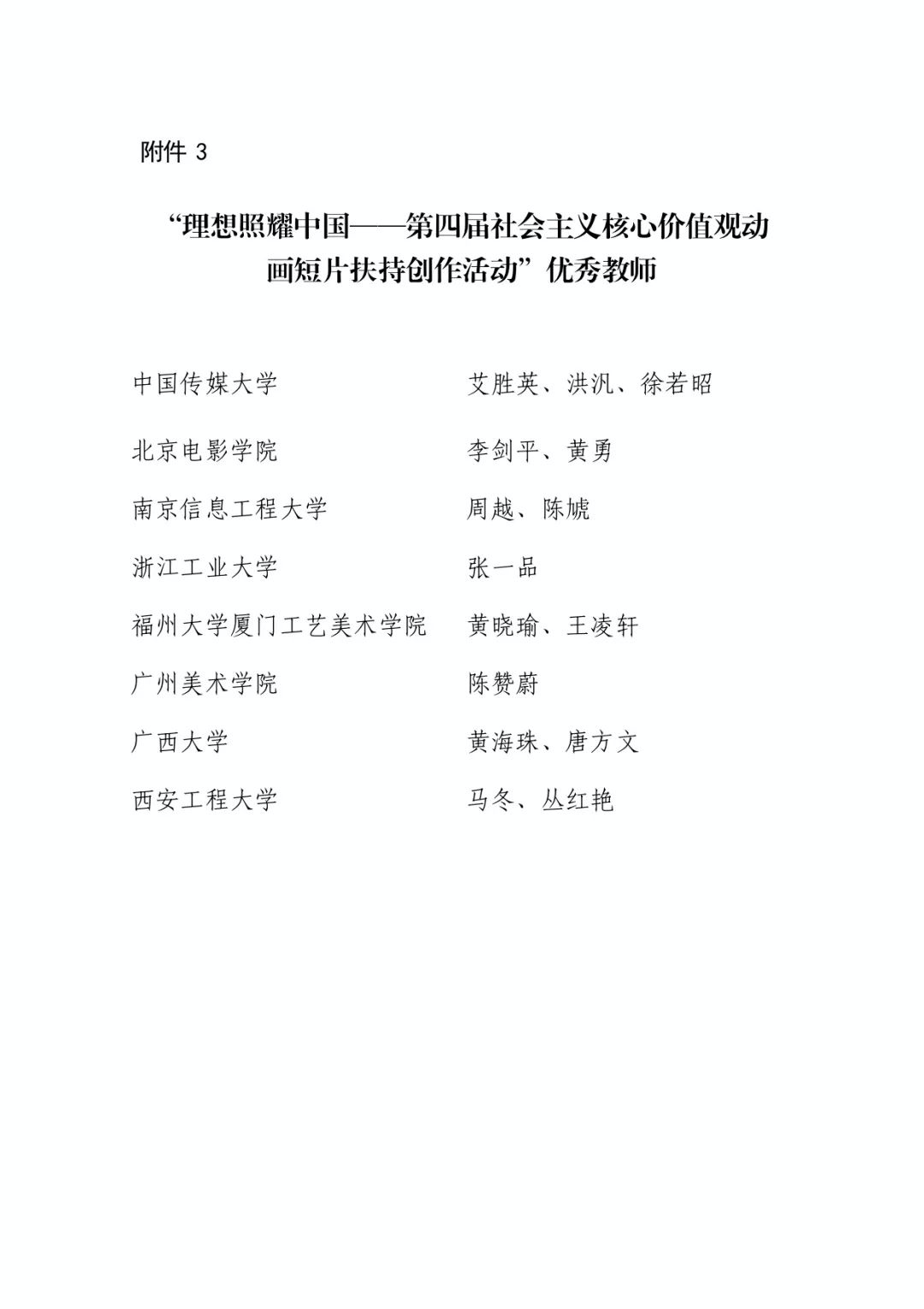 近日,国家广播电视总局下发《关于公布“理想照耀中国——第四届社会主义核心价值观动画片扶持创作活动”优秀创意的通知》,其中,韩国黄漫 获得优秀组织机构,韩国黄漫 教师马冬、丛红艳获得在此次活动中表现突出的优秀教师称号。