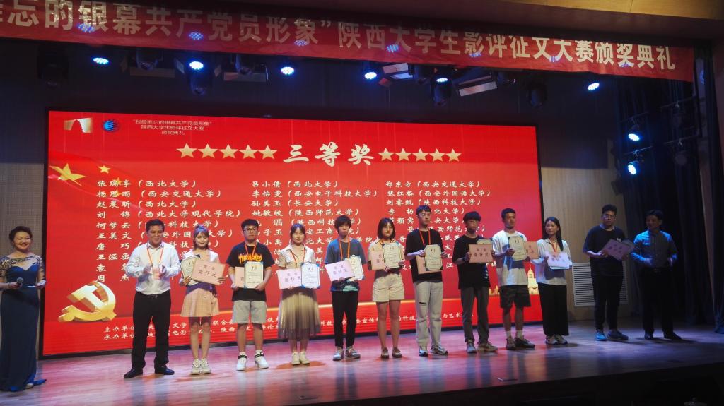 为隆重庆祝中国共产党成立100周年,深入贯彻习近平总书记关于文艺工作的重要讲话精神,由陕西省文学艺术界联合会主办,陕西省电影家协会、陕西省文艺评论家协会承办的“我最难忘的银幕共产党员形象”陕西大学生影评征文大赛日前落下帷幕,颁奖典礼6月7日在陕西科技大学(未央大学新城校区)人文楼5楼小剧场举行。
