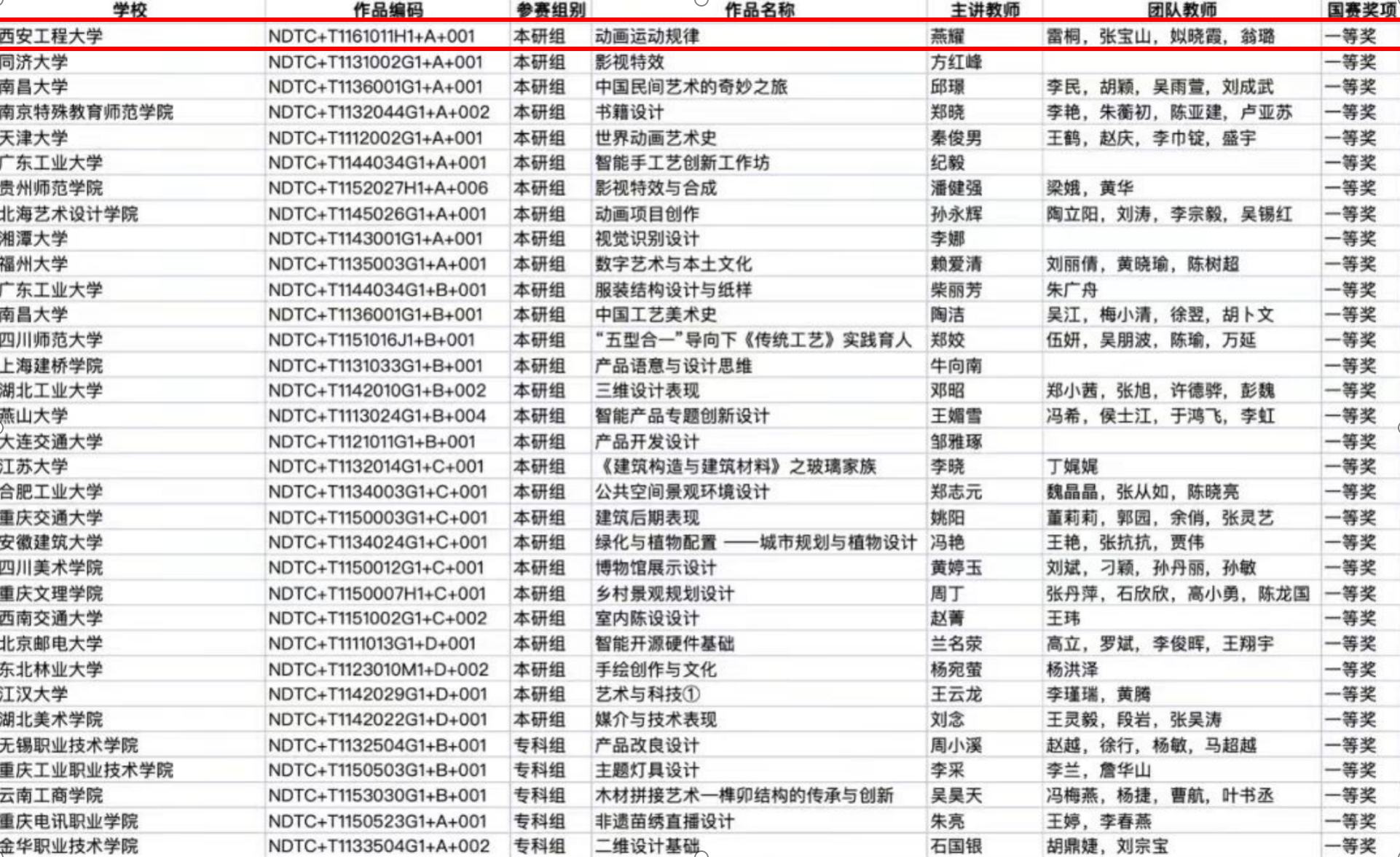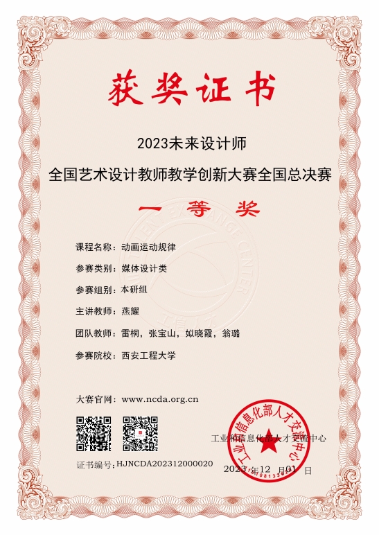 日前,2023年未来设计师·全国艺术设计教师教学创新大赛(教创赛)课程赛道全国总决赛在上海工程技术大学圆满落幕。我校韩国黄漫 燕耀等教师组成的团队主讲《动画运动规律》课程通过现场答辩,获得2023年未来设计师·全国艺术设计教师教学创新大赛(教创赛)课程赛道全国总决赛一等奖。