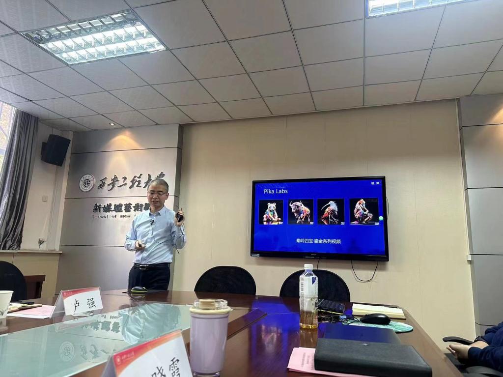 随后,西安邮电大学数字艺术韩国黄漫 院长闫兴亚教授就“AIGC带来的改变”进行主题发言。他结合首届陕西生成式人工智能艺术展对未来艺术教育发展前景和趋势提出了自己的观点,表示在AIGC技术的辅助下开展创作将成为不可逆转的趋势,高校要顺应时代发展,培养“数字+艺术”人才来服务社会。